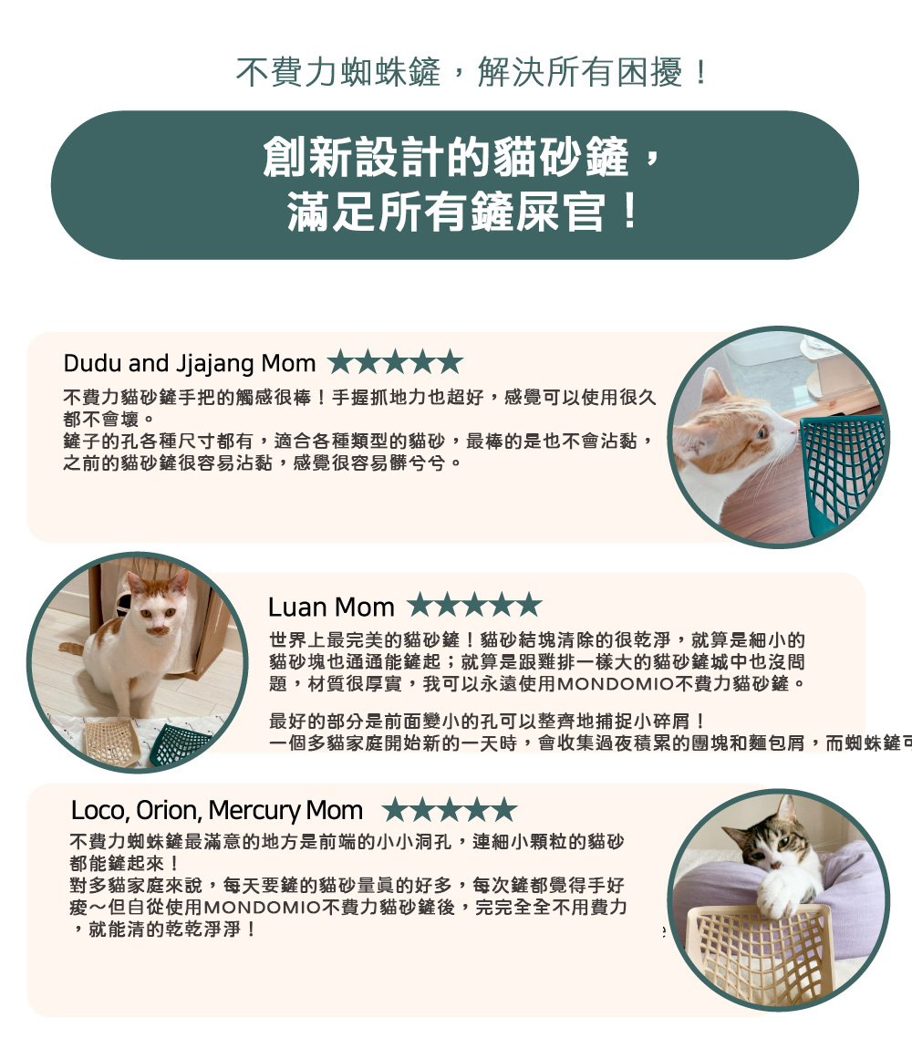 韓國MONDOMIO夢多美 不費力蜘蛛網造型貓砂可承受兩公斤重!一次可鏟起好多!