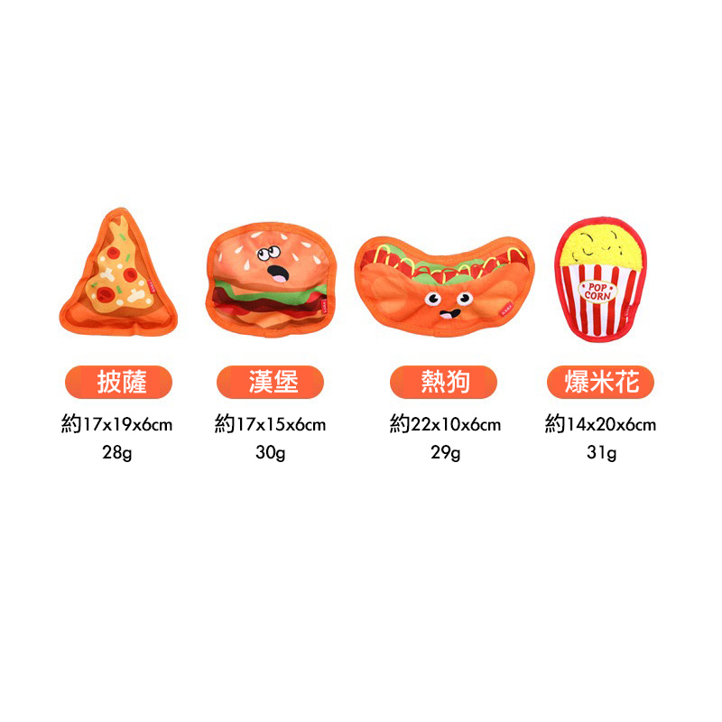 狗狗玩具 耐磨耐咬有啾啾聲 解悶自嗨 發聲玩具 材質舒服 美式速食玩具 漢堡披薩熱狗爆米花