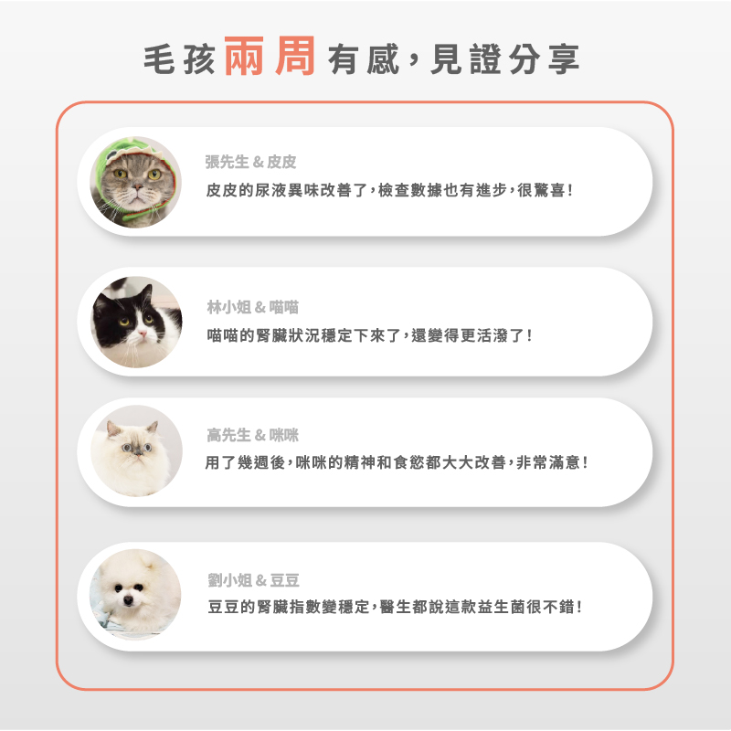 「泌尿與腎臟問題,是許多犬貓高齡化後常見卻被忽略的風險。這款配方,是我們結合實證益生菌與臨床保健邏輯下的結果,適合日常保養,也能作為治療期間的營養支持。」